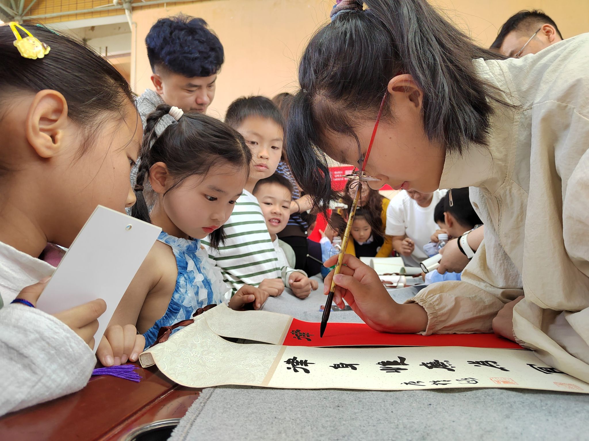 贵州省镇宁自治县纪委监委丰富形式和载体,进一步深化家庭助廉活动内涵,筑牢家庭拒腐防变廉洁防线。图为该县纪委监委联合县妇联开展“清风润家”活动,书法老师正为参加活动的家庭书写廉洁家风家训。(贵州省镇宁自治县纪委监委供 蔡齐秀 摄)